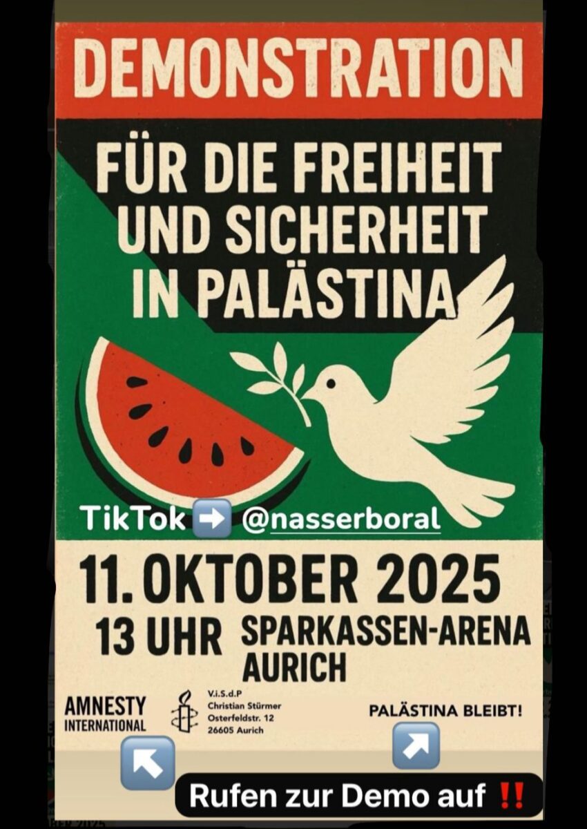 Kommt also zur Demonstration am 11.10.2025 um 13 Uhr, Startpunkt ist der Platz vor der Sparkassenarena.