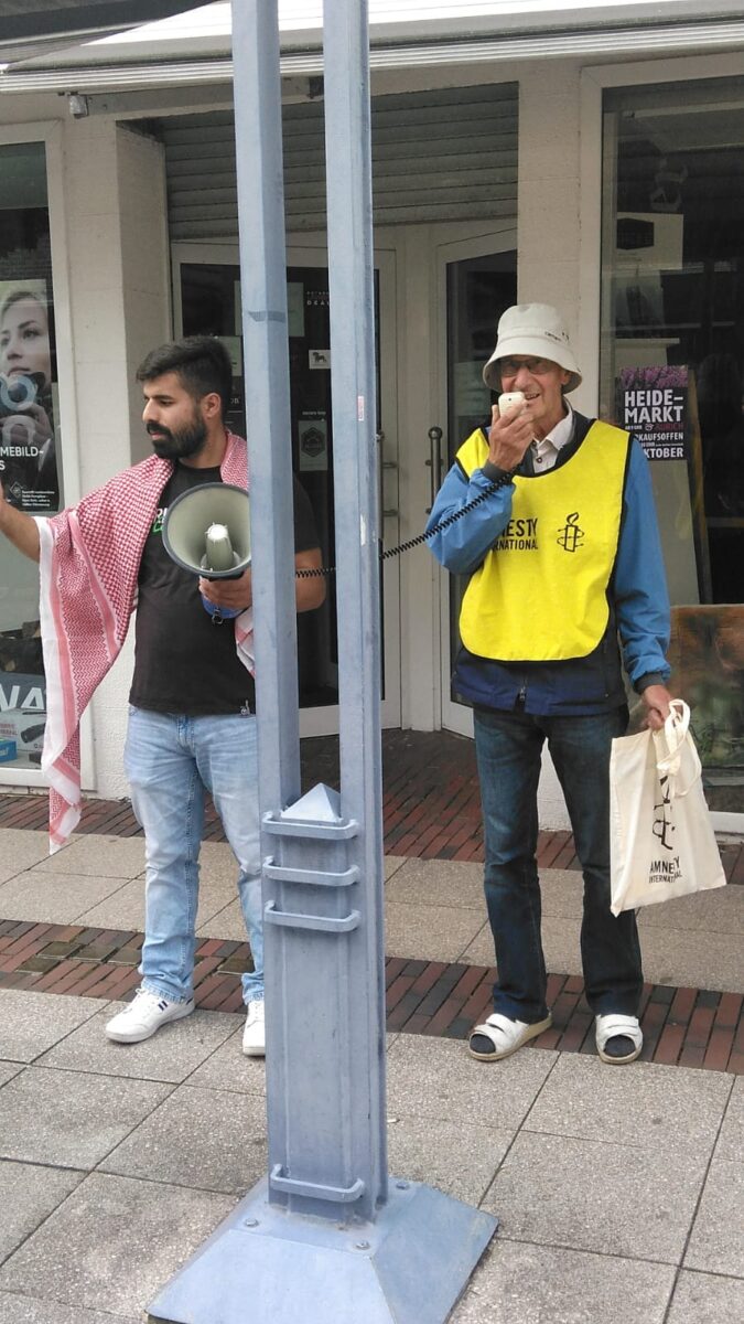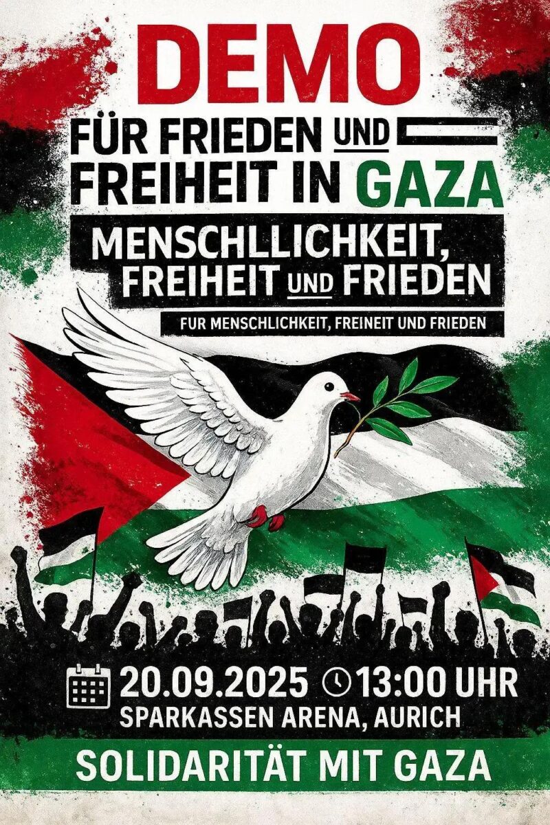 20.9.2025 Die Auricher Gruppe von Amnesty international hat den Aufruf zu einer erneuten Demonstration gegen den Gaza-Krieg unterstützt und sich erneut beteiligt. Initiator dieser Demonstration für Menschenrechte und ein Leben in Freiheit und gegenseitigem Respekt für Juden und Palästinenser ist eine Basisinitiative.