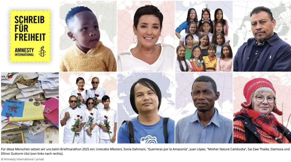Zum Internationalen Tag der Menschenrechte am 10. Dezember organisiert Amnesty International seit über 20 Jahren den Briefmarathon – die weltweit größte Menschenrechtsaktion. Jedes Jahr schreiben Hunderttausende Menschen Briefe und unterschreiben Petitionen, um sich für Personen einzusetzen, die unter staatlicher Willkür leiden oder deren grundlegende Rechte verletzt wurden. Diese Solidaritätsbekundungen zeigen Wirkung: Sie geben Betroffenen Hoffnung, stärken ihre rechtliche Lage und haben bereits mehrfach Leben gerettet.